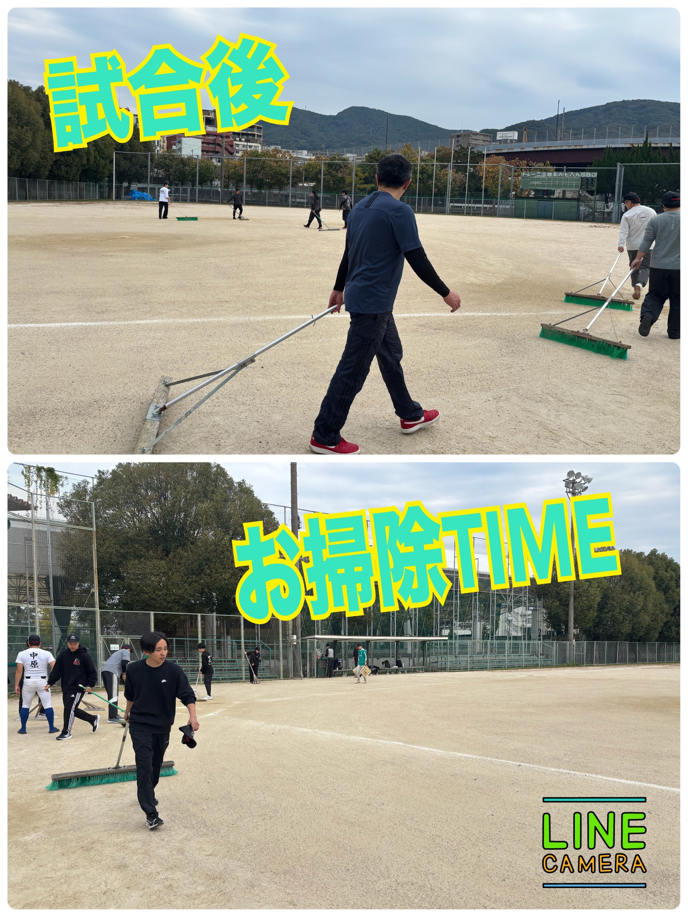 試合後は両チームでグラウンド整備🧹