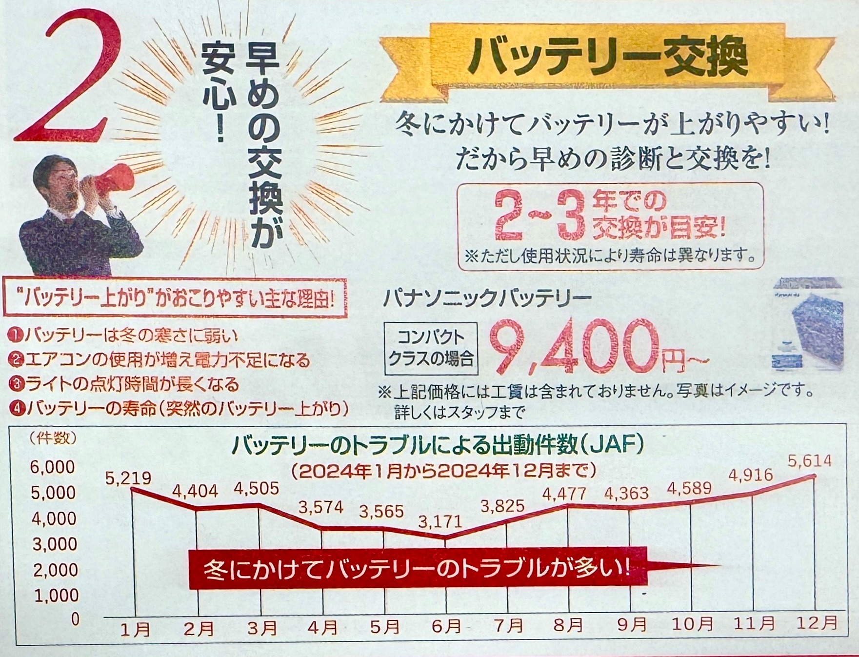 やはり冬はバッテリートラブルが増えてきます。