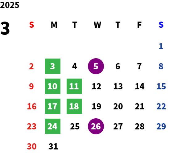 営業日カレンダー
