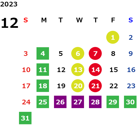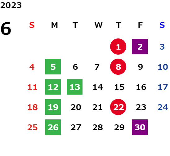 営業日カレンダー