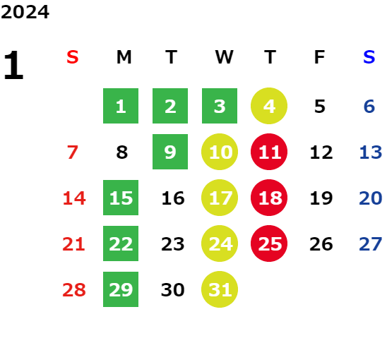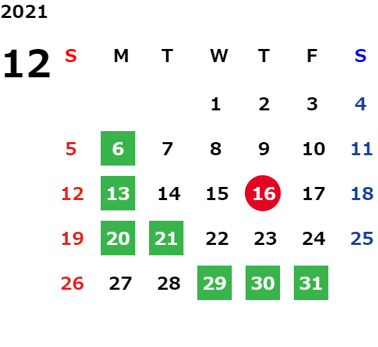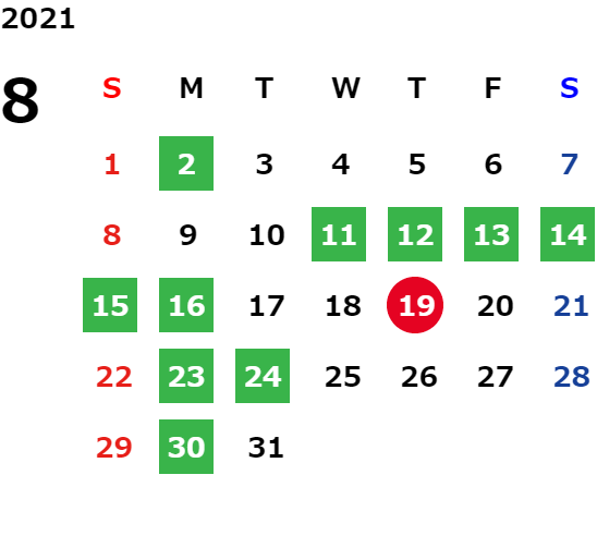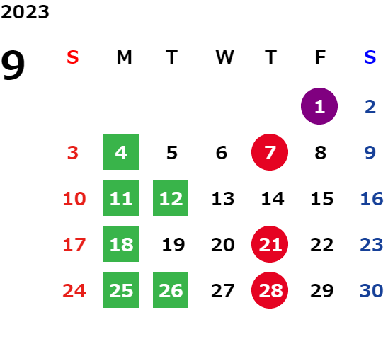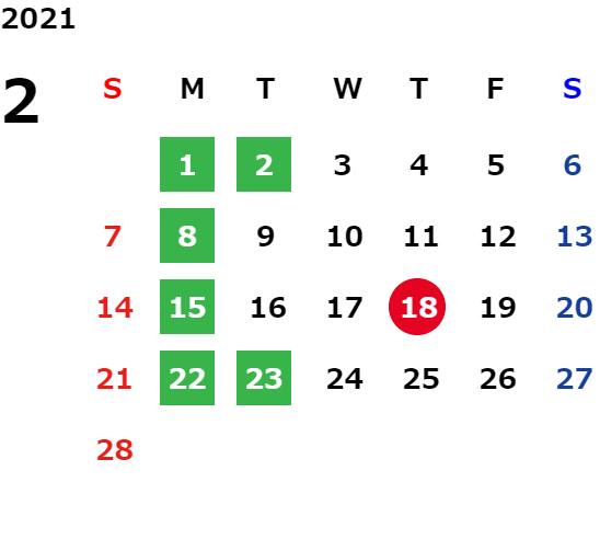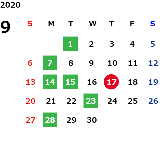 営業日カレンダー